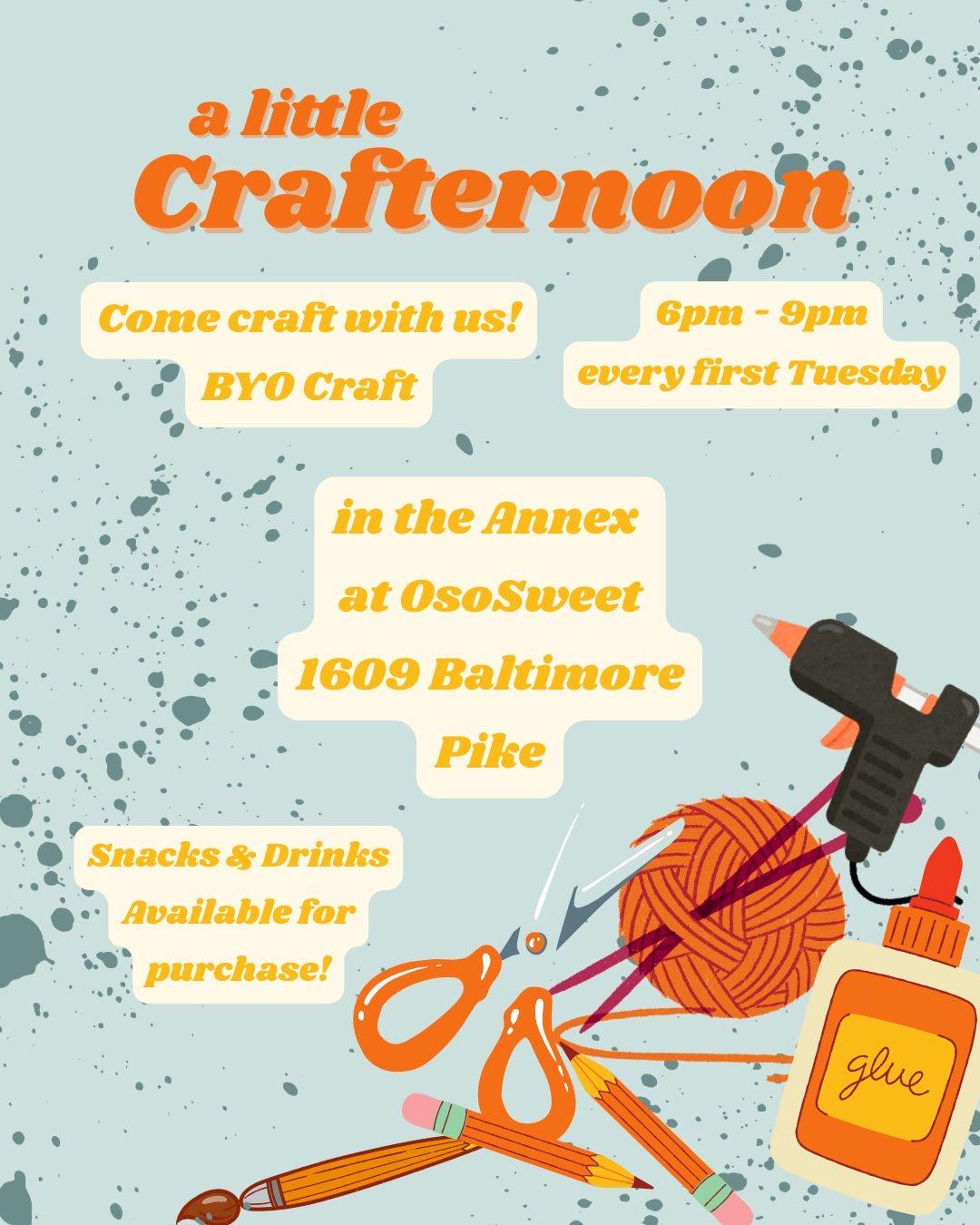 Join us at OsoSweet for our monthly Crafternoon! It’s a dedicated time to gather, create, and connect with fellow makers in the community.