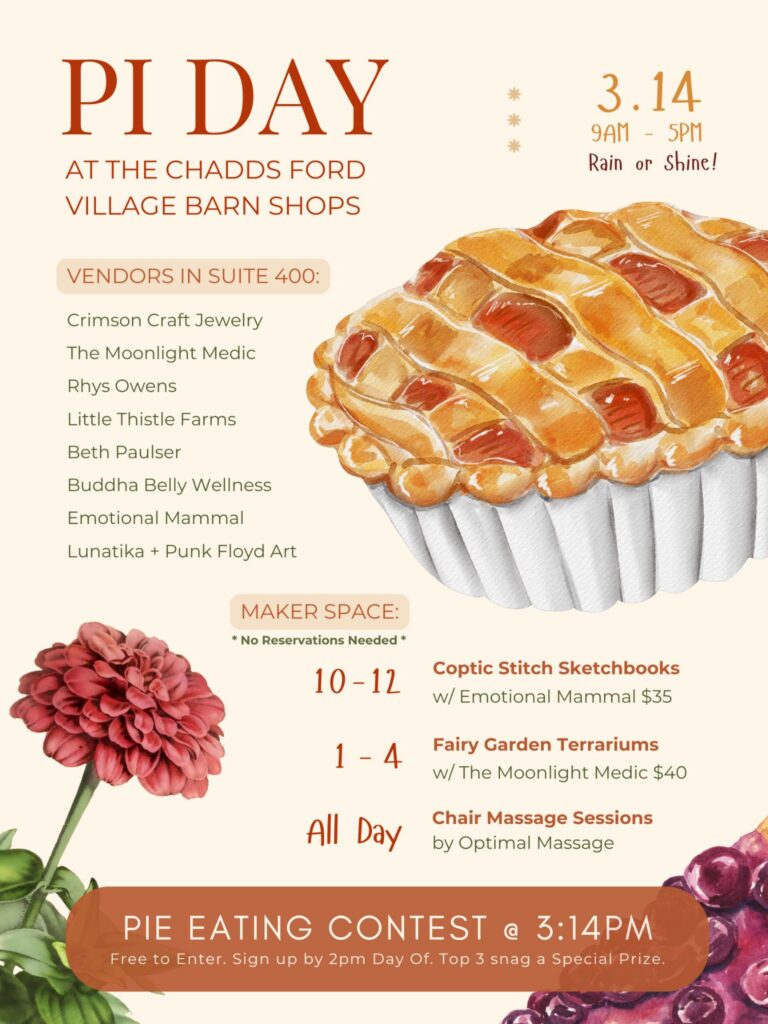 Forget your high school geometry—it’s time for the kind of “Pi” you can actually sink your teeth into. This **March 14th**, the **Chadds Ford Village Barn Shops** are transforming into a haven for makers, bakers, and community spirit. Whether you’re a math enthusiast or just someone who follows their nose to the nearest bakery, this …