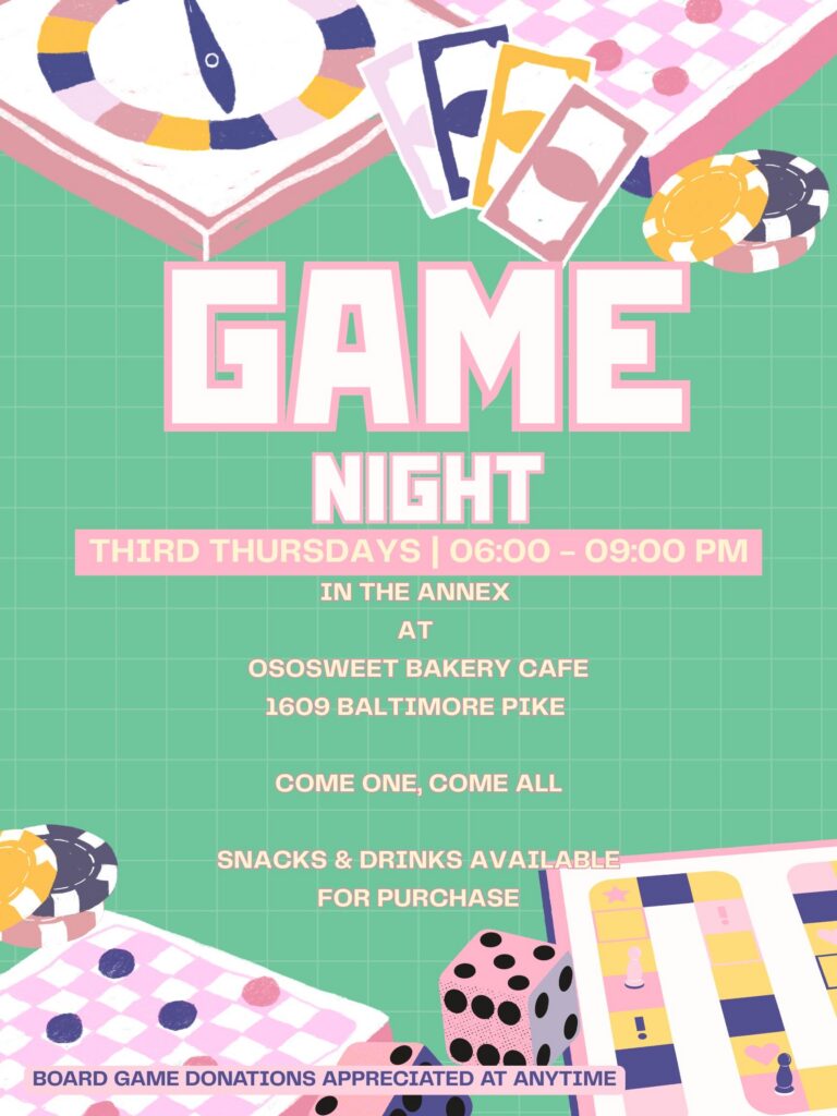 Calling all gamers, friends, and anyone looking for a fun evening! Our friends at OsoSweet Bakery Cafe are hosting a monthly Game Night, and it sounds like an absolute treat.